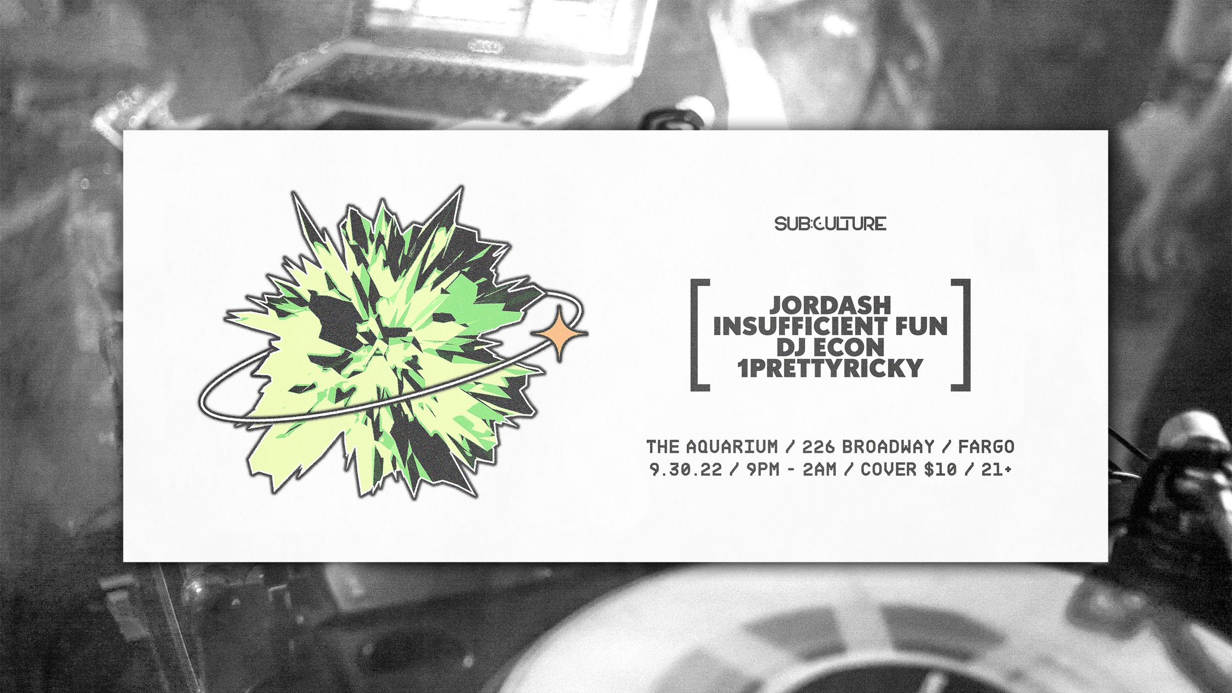 Sub:Culture is an electronic music promoter and was looking for promotional materials for an upcoming show at The Aquarium in Fargo, North Dakota.